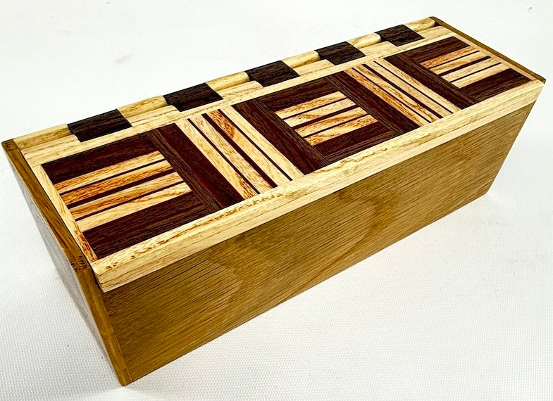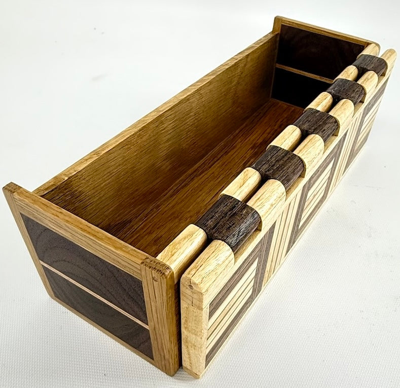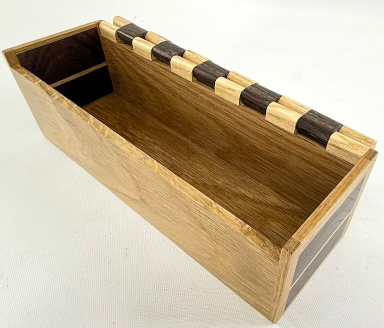 All surfaces of this box are sealed with Minwax Polycrylic and a hand rubbed General Finishes satin sheen wax.