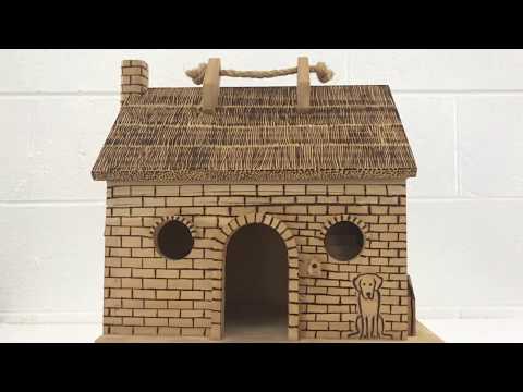 Included is an rope handle to carry it with, wooden hinged chimney, and wooden latch.